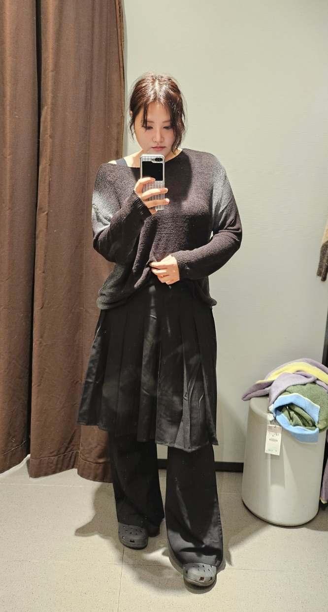 체형 커버 면에서는 H&M이 암홀과 소매가 여유로워 실루엣이 자연스럽게 떨어진다.