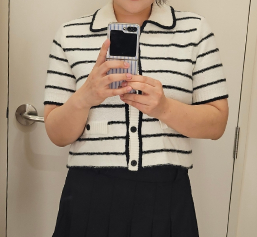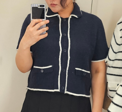 반팔 니트 가디건.